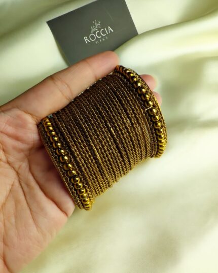Oxidised Dotted Metal bangle set-023