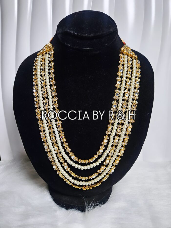Kundan Maala –A timeless piece of traditional jewellery, the Kundan Maala showcases exquisite craftsmanship with finely set Kundan stones. Designed to add regal charm, this maala is perfect for weddings, festive occasions, and cultural celebrations. Its intricate detailing and graceful finish make it a statement accessory that complements both ethnic and bridal attire.