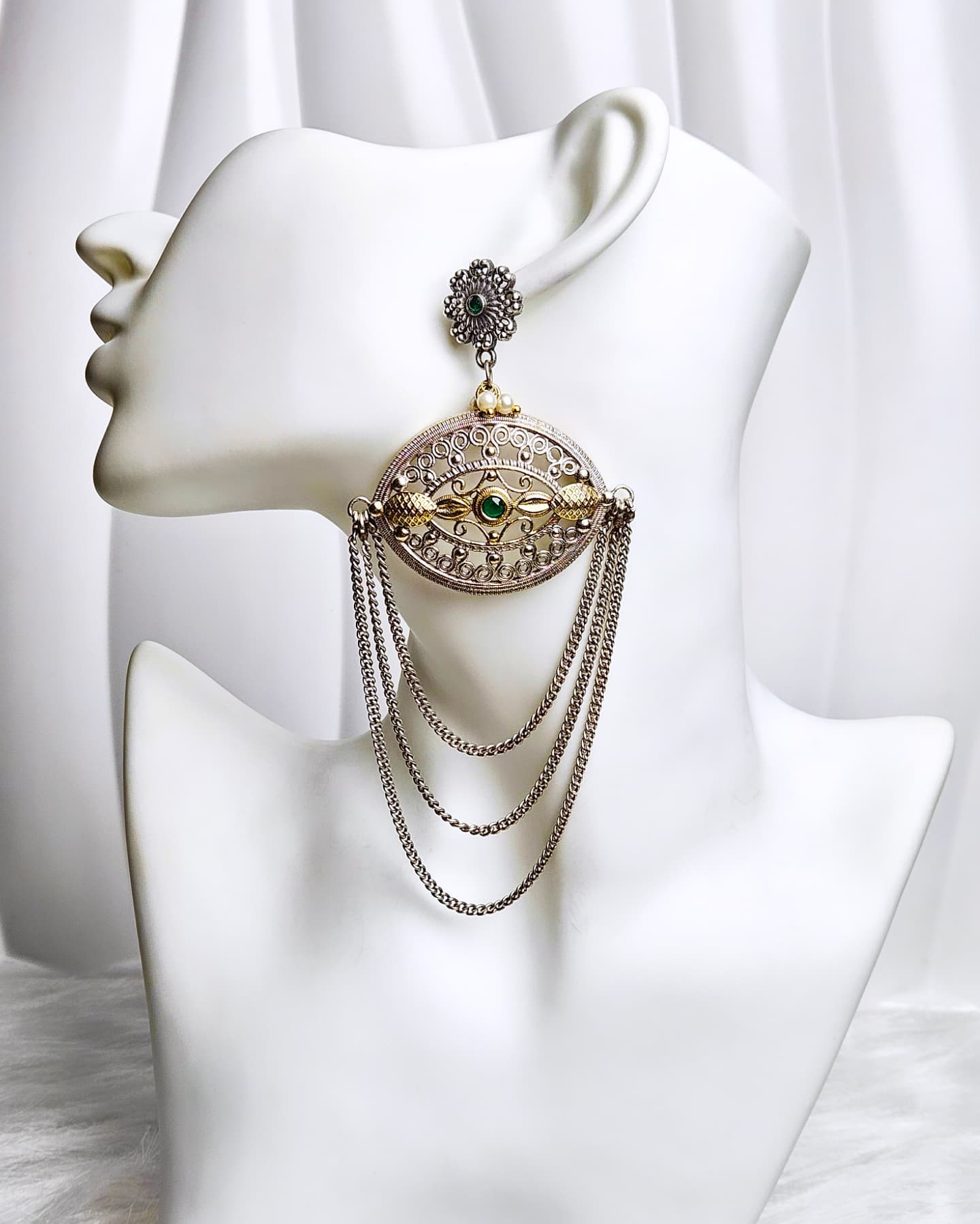 Elevate your ethnic look with these beautifully handcrafted German silver jhumkay designed with intricate detailing. Made from high-quality brass with a radiant silver finish, these jhumkay are lightweight yet durable—perfect for long hours of wear. The delicate engravings and subtle shine make them an ideal accessory for festive occasions, weddings, and everyday ethnic styling.
