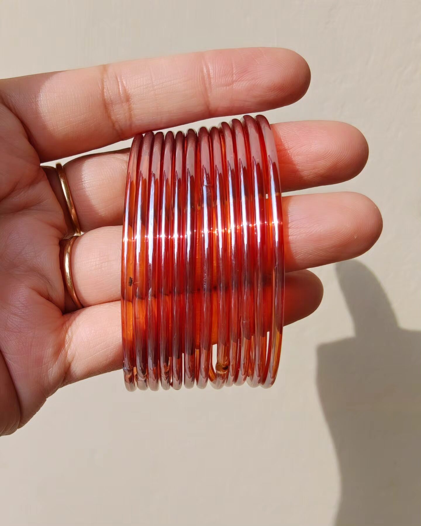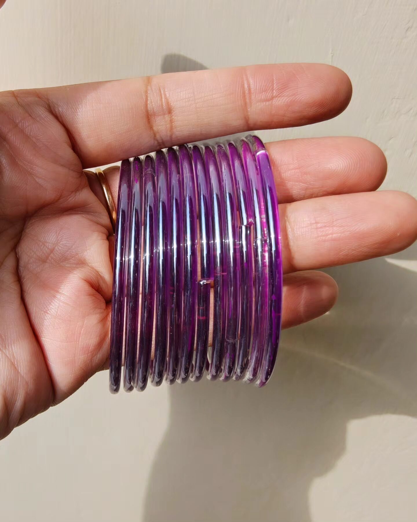 Add a touch of timeless grace to your ensemble with these exquisite Glass Jelly bangles. Perfect for weddings, festivals, or special occasions, they beautifully blend traditional craftsmanship with regal charm. Their lightweight and comfortable design makes them ideal for everyday wear, while their traditional charm makes them perfect for weddings, festivals, and special occasions.