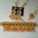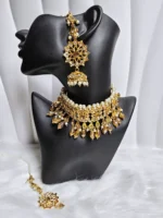 Add a touch of sparkle with this elegant Hyderabadi Chowker Set. Lightweight and versatile set in a gold-tone base with intricate detailing. It’s ideal for both cultural and festive occasions.