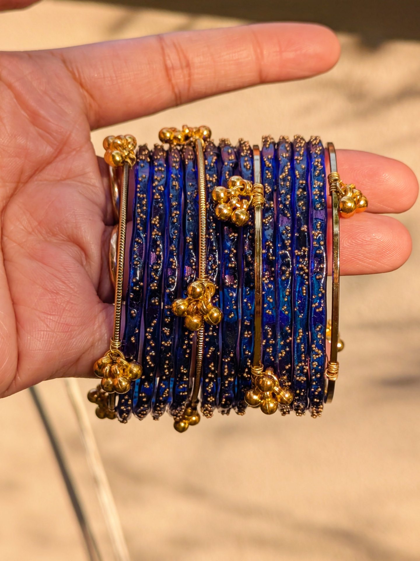 Add a touch of timeless grace to your ensemble with these exquisite Indian Raindrop & Kashmiri bangles. Perfect for weddings, festivals, or special occasions, they beautifully blend traditional craftsmanship with regal charm. Their lightweight and comfortable design makes them ideal for everyday wear, while their traditional charm makes them perfect for weddings, festivals, and special occasions.