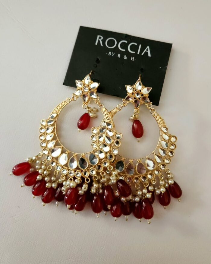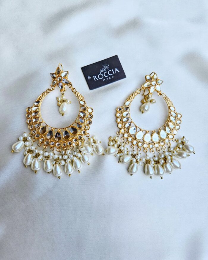 Traditional Earrings meticulously crafted to blend timeless elegance with cultural heritage. These earrings feature intricate detailing inspired by classic artistry, making them a perfect companion for weddings, festivals, and special occasions.