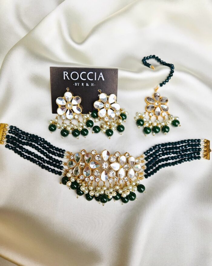 Add a touch of sparkle with this elegant Kundan Necklace Set, featuring kundan stones. Lightweight and versatile set in a gold-tone base with intricate detailing. It’s ideal for both cultural and festive occasions.