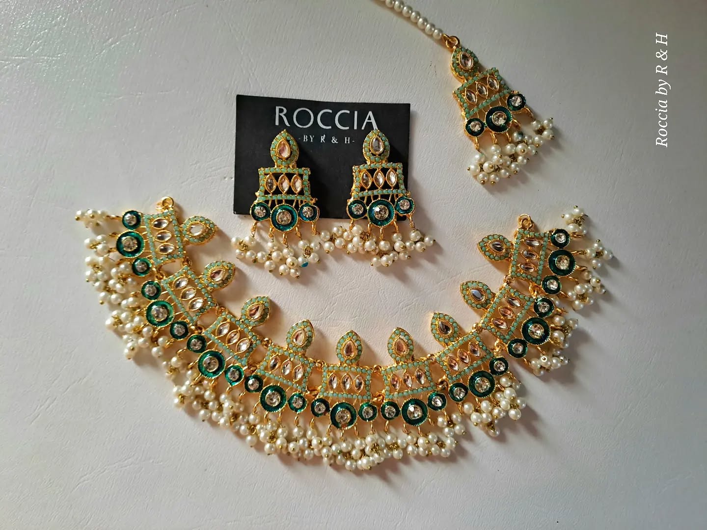 Add a touch of sparkle with this elegant Navratan Necklace Set, featuring colorful stones. Lightweight and versatile set in a gold-tone base with intricate detailing. It’s ideal for both cultural and festive occasions.
