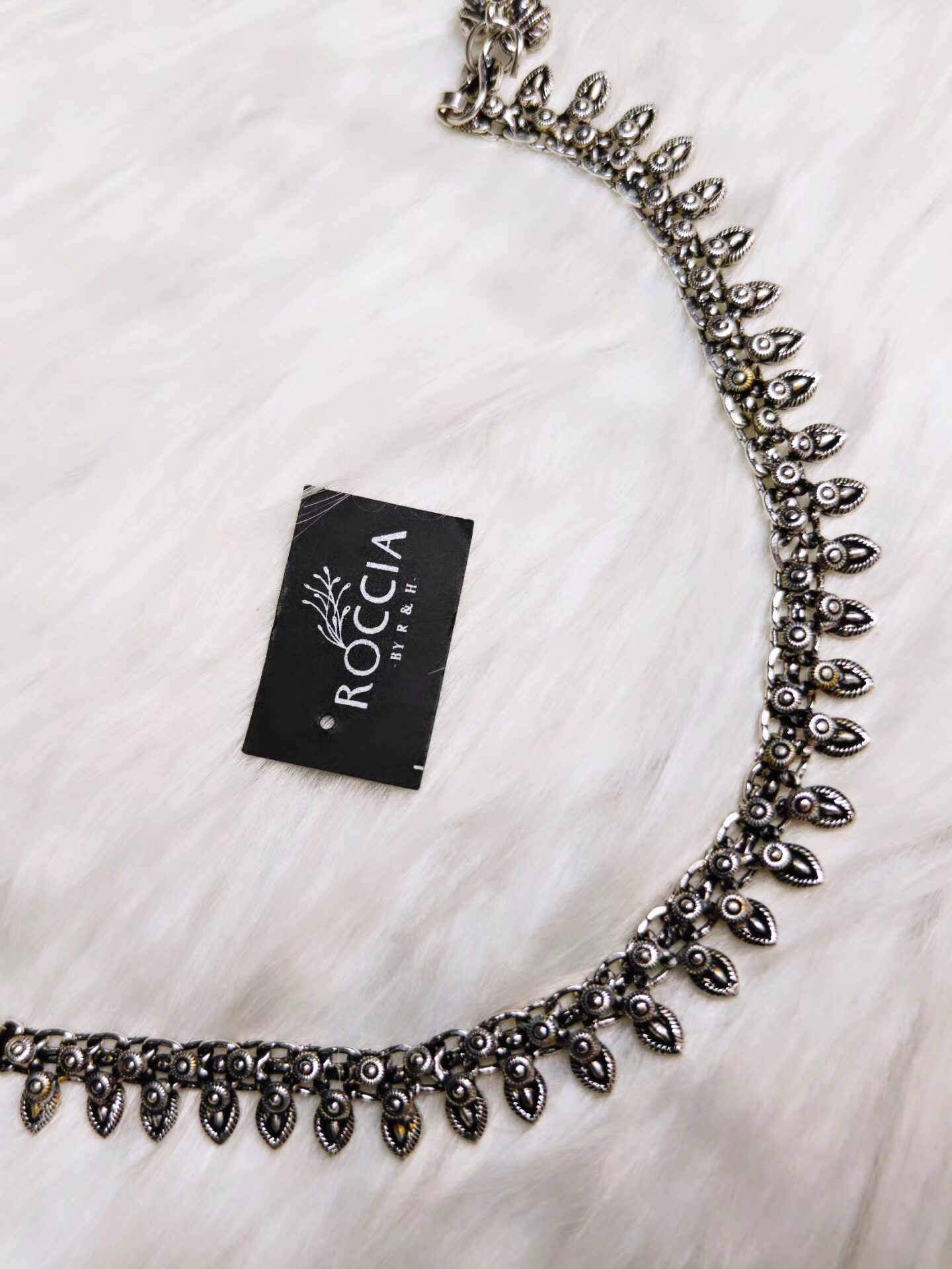 Its lightweight design ensures comfortable wear throughout the day, while the antique oxidised finish gives it a unique vintage touch.