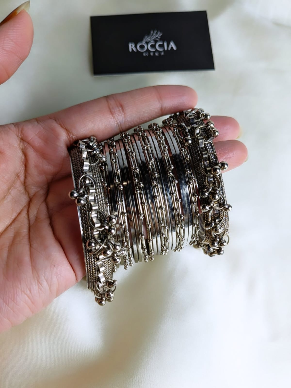 Add a touch of timeless elegance to your jewellery collection with our beautifully crafted oxidised bangles. Featuring intricate detailing and a rich antique finish, these bangles blend traditional charm with contemporary style. Perfect for everyday wear or festive occasions.