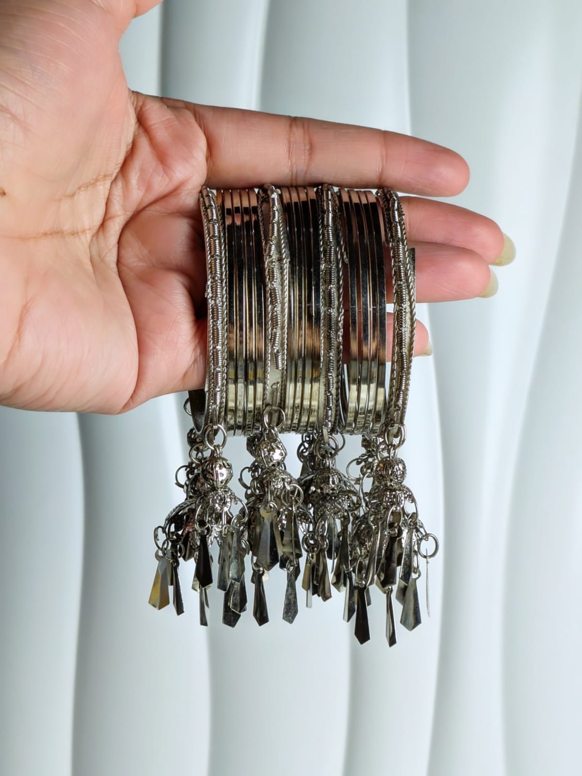 Add a touch of timeless elegance to your jewellery collection with our beautifully crafted oxidised bangles. Featuring intricate detailing and a rich antique finish, these bangles blend traditional charm with contemporary style. Perfect for everyday wear or festive occasions.