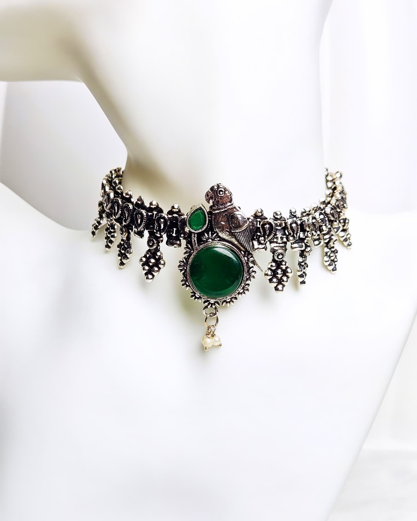 A beautifully crafted oxidised necklace with antique polish finish and intricate detailing. Perfect to pair with ethnic or fusion wear for a timeless, elegant look.