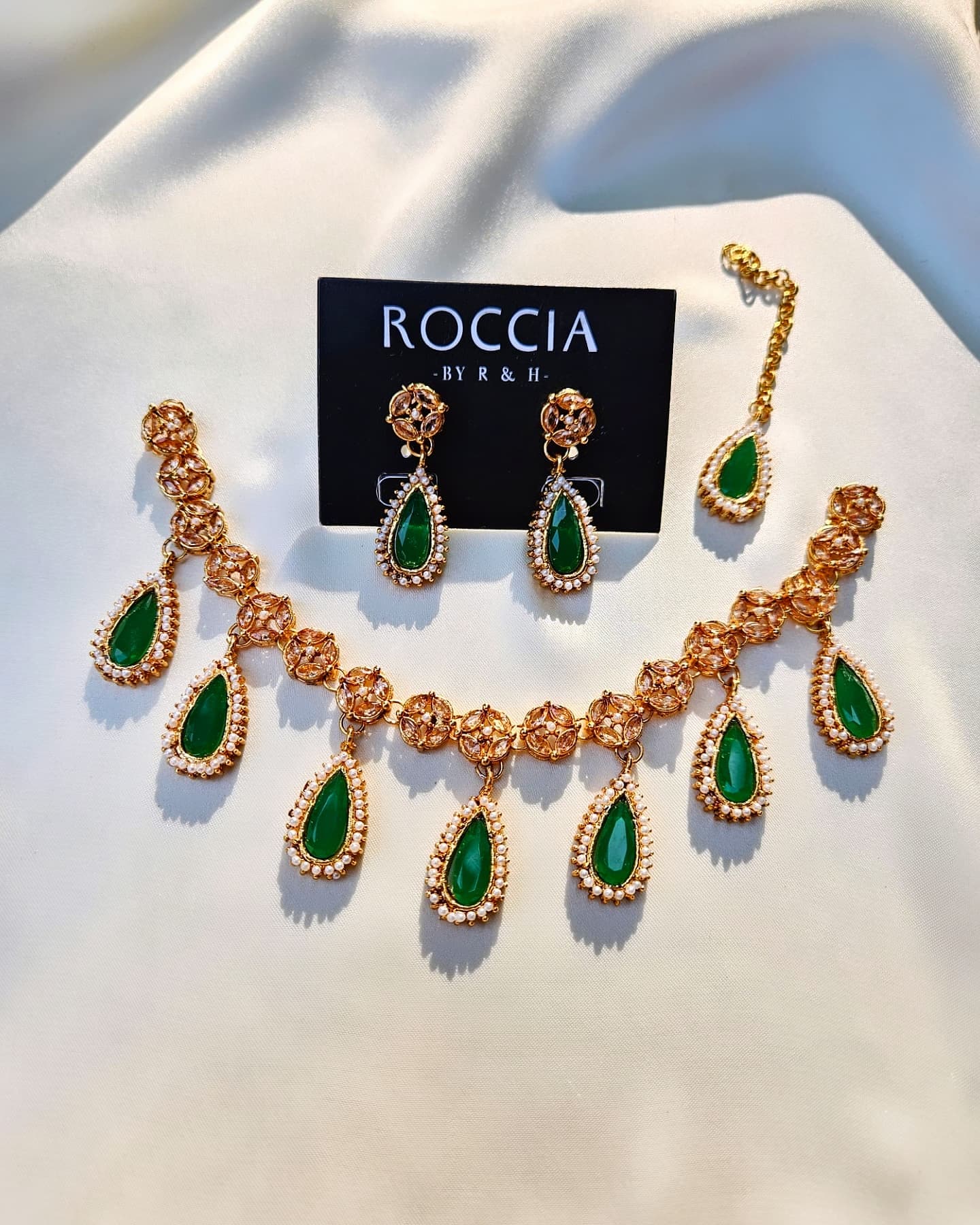 Add a touch of sparkle with this elegant Necklace Set, featuring real stones. Lightweight and versatile set in a gold-tone base with intricate detailing. It’s ideal for both cultural and festive occasions.